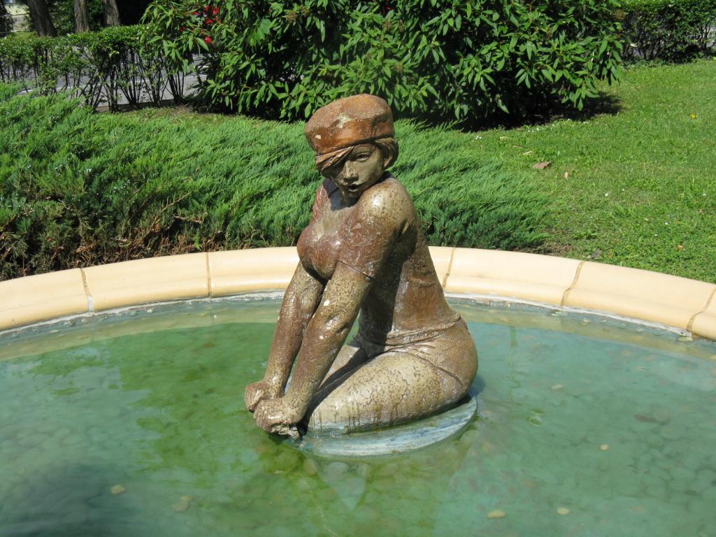 A Fő utca és a Mártírok útja kereszteződésében lévő kis parkban található Fürtös György alkotása. Érdekessége, hogy a művész a kút medence részébe egy kerékpározó lány szobrát helyezte el. A mázas pirogránitból készült alkotást 1990-ben avatták fel.