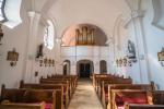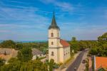 A község központjában álló, barokk stílusú templomot Vajda Sámuel tihanyi apát építtette 1771-1774 között. A keresztelőkút és az oltár rokokóba hajló barokk stílusú. A templom az angyalok királynője, Kisboldogasszony tiszteletére lett felszentelve. A templom orgonája a II. világháború pusztításai során megsemmisült. Pótlására 2010-ben szentelték fel az új, francia barokk hangzásvilágú orgona, mely Magyarországon egyedülálló.