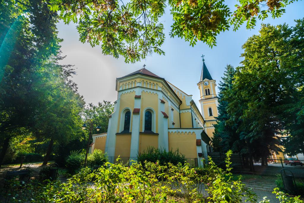A templom főbejárata fölött Muzsinszki Nagy Endre festménye látható, a diadalíven Leszkovszky György akadémiai tanár freskói, a hajóban Büky Béla stációképei és Krasznay Lajos szobrai tekinthetők meg.