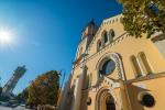 A homlokzat üvegablakai Róth Miksa budapesti műhelyében készültek.
