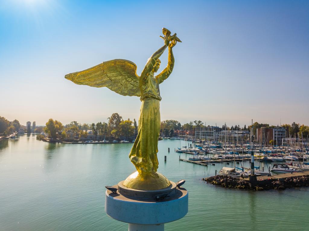 Pjotr Tyimofejevics Sztronszkij orosz szobrászművész alkotását a 2012. szeptember 5–e és 7-e között Siófokon megrendezett Finnugor Népek VI. Világtalálkozójának alkalmából avatták fel. A kikötő keleti mólóján felállított alkotás egy aranyozott angyalt ábrázol, mely kezében galambot tart, ezzel szimbolizálva a békét, barátságot és egyetértést. A műalkotás több oroszországi szervezet közös ajándéka Siófok városa részére.