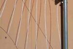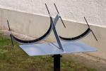 Azzal, hogy két-két pólusra mutató árnyékvető pálca került a körívek meghatározott helyeire, a több árnyékvető és az innen-onnan vetülő árnyékok érdekessé teszik a napórát. A skálasík felső és alsó oldalára vetülő árnyékok miatt kellett a méretezett hosszúságú árnyékvetőknek felfelé és lefelé is kinyúlni a skálasíkból. A napóra tartólapja a felszín alatti betontömbből kiálló 100 cm magas tartócső felső végéhez van rögzítve. A skálák feketére eloxált vékony, 3 cm széles alumínium lemezek. A skálák negyedórás gyakoriságú osztásjelei és a római számozású feliratok színe fehér.