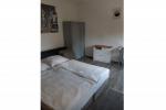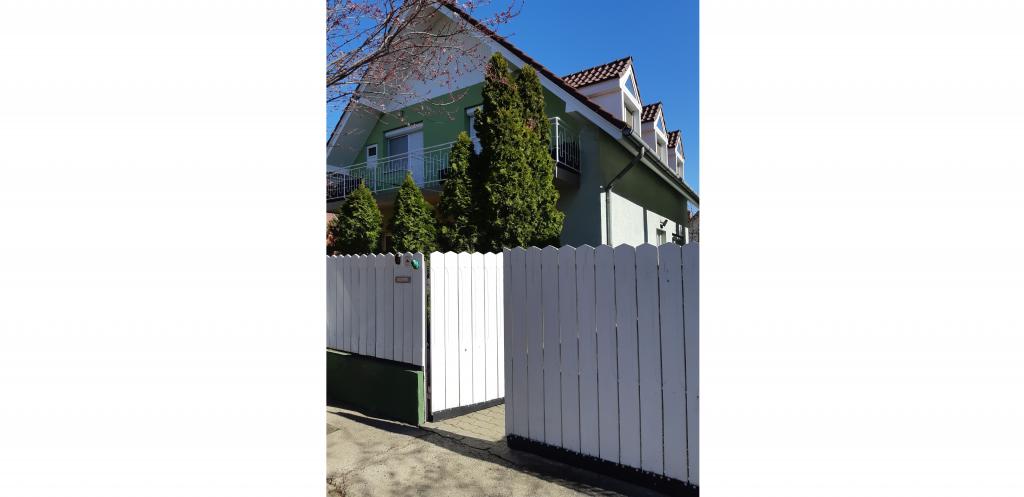 Felső szint: 10 fő részére kiadó, 5 hálószoba, 3db 3 ágyas, 2 db 2 ágyas, utcafronti erkélyel, teljesen felszerelt konyhával, nagy étkezővel, két különálló zuhanyzós illetve fürdőkádas fürdőszobával.