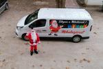 Már Siófok város utcáit járva a Mikulás és segítője. Figyeljétek Ti is a fehér színű autókat, Integess a Mikulásnak felirattal.